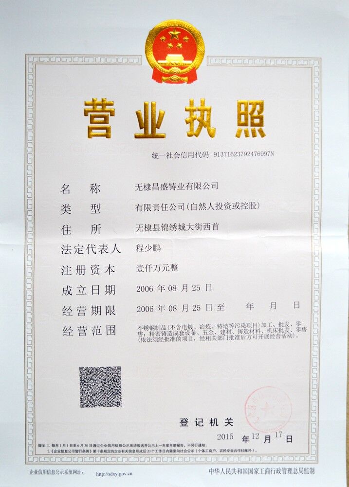 無棣昌盛鑄業(yè)有限公司歡迎您的蒞臨!